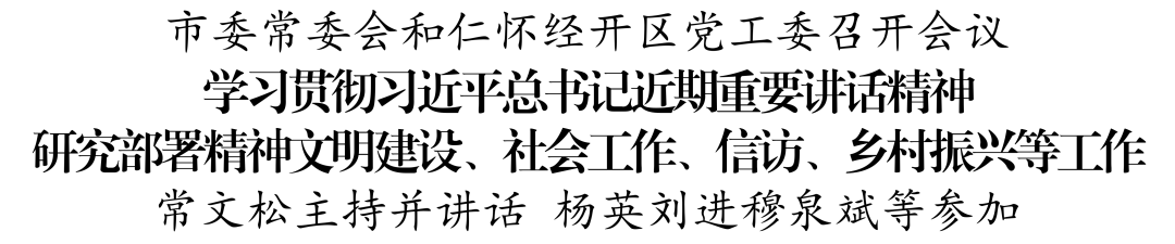 4月25日,市委常委会和仁怀经开区党工委召开会议,学习贯彻习近平总书记近期重要讲话精神,研究部署精神文明建设、社会工作、信访、乡村振兴等工作。
