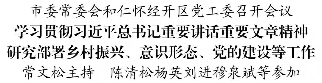6月20日,市委常委会和仁怀经开区党工委召开会议,学习贯彻习近平总书记重要讲话重要文章精神,听取全市巩固拓展脱贫攻坚成果同乡村振兴有效衔接、意识形态(网络意识形态)及网络安全、群众身边不正之风和腐败问题集中整治、常态化扫黑除恶斗争、深入贯彻中央八项规定精神学习教育等工作情况,研究部署相关工作。