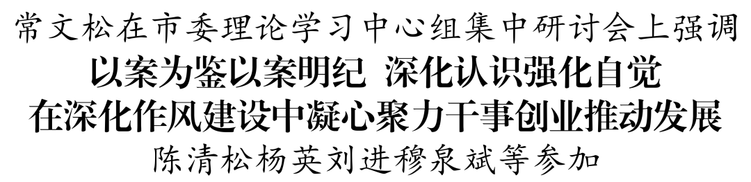 6月27日,市委理论学习中心组集中研讨会举行。市委书记常文松主持会议并讲话。他强调,要进一步深入学习贯彻习近平总书记关于加强党的作风建设的重要论述和在贵州考察时的重要讲话精神,认真贯彻中央八项规定及其实施细则精神,坚持以案为鉴、以案明纪,扎实有效解决作风建设突出问题,在深化作风建设中凝心聚力、干事创业、推动发展。
