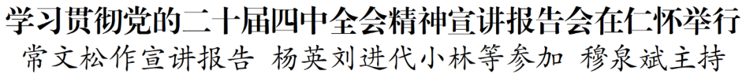 12月4日,学习贯彻党的二十届四中全会精神宣讲报告会在仁怀举行。遵义市委宣讲团成员、遵义市委常委、仁怀市委书记常文松作宣讲报告。