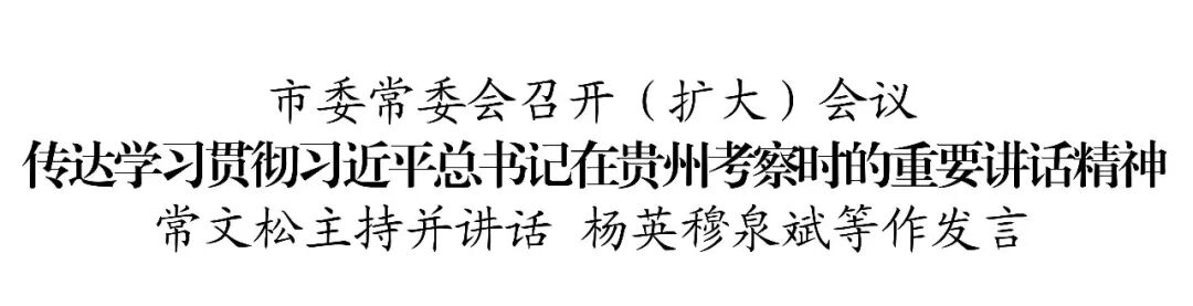 3月20日,市委常委会召开(扩大)会议,传达学习贯彻习近平总书记在贵州考察时的重要讲话精神、在全国两会期间的重要讲话精神,安排部署我市学习宣传贯彻工作;研究部署深入贯彻中央八项规定精神学习教育、巩固拓展脱贫攻坚成果同乡村振兴有效衔接等工作。