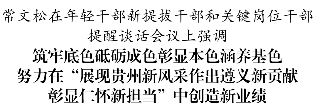 5月28日,市委召开年轻干部、新提拔干部和关键岗位干部提醒谈话会议。市委书记常文松出席并讲话,他强调,要深入学习贯彻习近平总书记关于加强党的作风建设的重要论述和在贵州考察时的重要讲话精神,全面落实省委、遵义市委和仁怀市委部署要求,筑牢底色、砥砺成色、彰显本色、涵养基色,努力在“展现贵州新风采作出遵义新贡献彰显仁怀新担当”中创造新业绩。