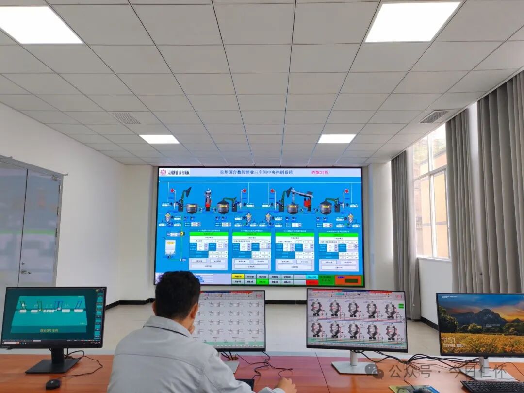 数据是智能化酿造的关键,贵州国台数智酒业开发的中央控制系统让工作人员通过系统实时监控生产,相关情况在大屏幕上一览无余,工作人员只需根据监测数据及相应指令进行流程管控,就能实现车间全自动智能化生产,做到一颗粮食到一滴酒的精准酿造。