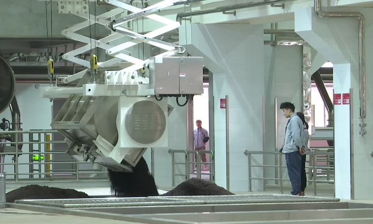 走进国台酒业智能酿造车间,传统酿酒工艺与现代科技在这里交融在车间配料区,智能设备马力全开糟醅与糠壳在精准数字化控制下均匀混合。