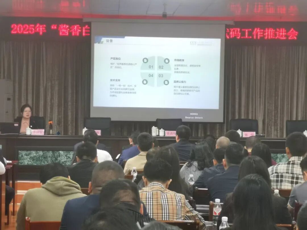 4月28日,2025年“酱香白酒•遵义产区”产品认证赋码工作推进会在仁怀市召开,安排部署推动全市“酱香白酒•遵义产区”产品认证工作,加强区域认证品牌体系建设。