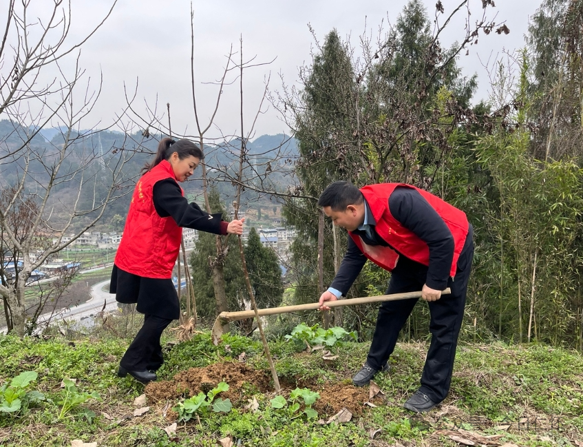 苍龙街道联合市财政局在苍头坝社区代泥丫组大沙坡开展义务植树活动,以实际行动为遇见苍龙再添一抹新绿。据悉,此次共种植1000余株香樟树,200余株桐梓树。