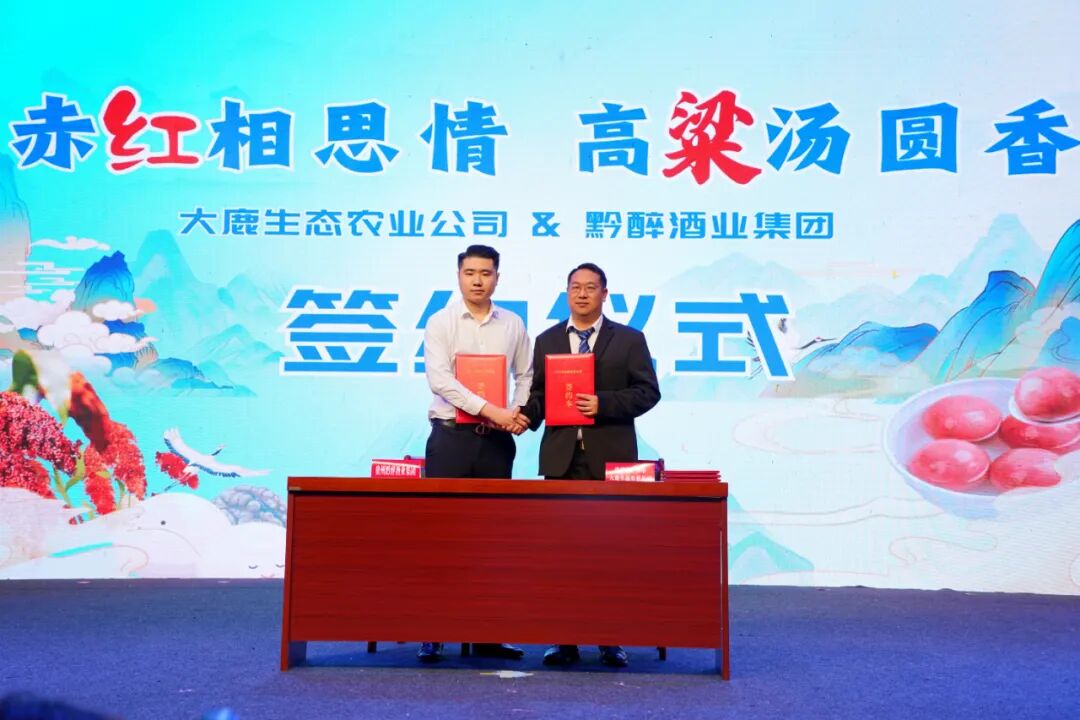 发布会现场,贵州省远明酒业集团、贵州省黔醉酒业集团、贵州顺毅科技有限公司、巨汇连锁生活超市4家商户代表,与龙井镇大鹿村代表签约,签订首批赤红相思糯高粱汤圆预售订单,累计金额1000万元。