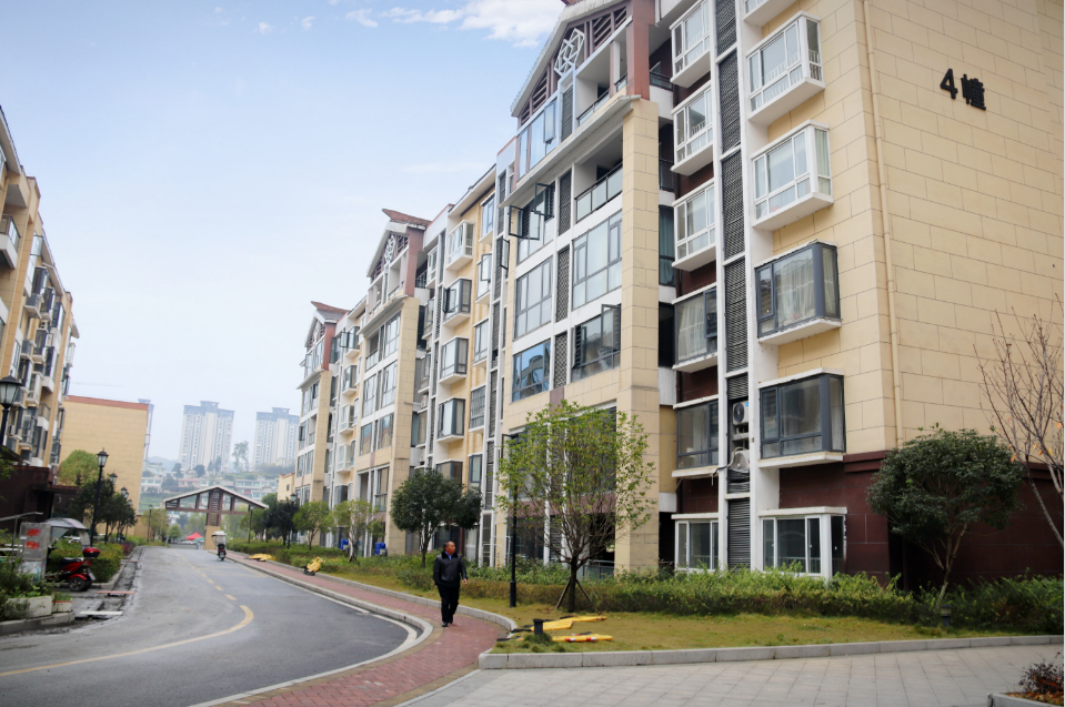 走进鲁班街道黄家田社区盘龙水乡一期拆迁安置点,一栋栋崭新的高楼、一条条宽敞干净的水泥路便呈现在眼前。4年前,588户拆迁安置群众从就近的尚礼社区、陶家寨社区、双龙社区搬迁到这里,开启新生活。作为仁怀征地拆迁安置点之一,该拆迁安置点有住宅楼9栋,占地面积72000平方米,距城区11公里,教育机构、药房、金融网点、便民超市、餐饮店等基础设施一应俱全。