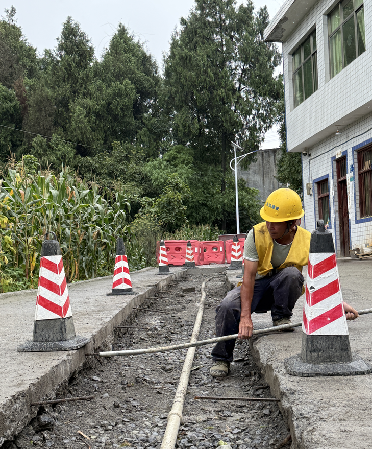 施工机械沿着路边开凿管道,将崭新的水管铺到家门口,得到群众一致好评,“之前水管年久失修,影响正常生活用水,现在等工程完工通水后,用水就方便多了”高大坪镇高坪社区居民姚林说。