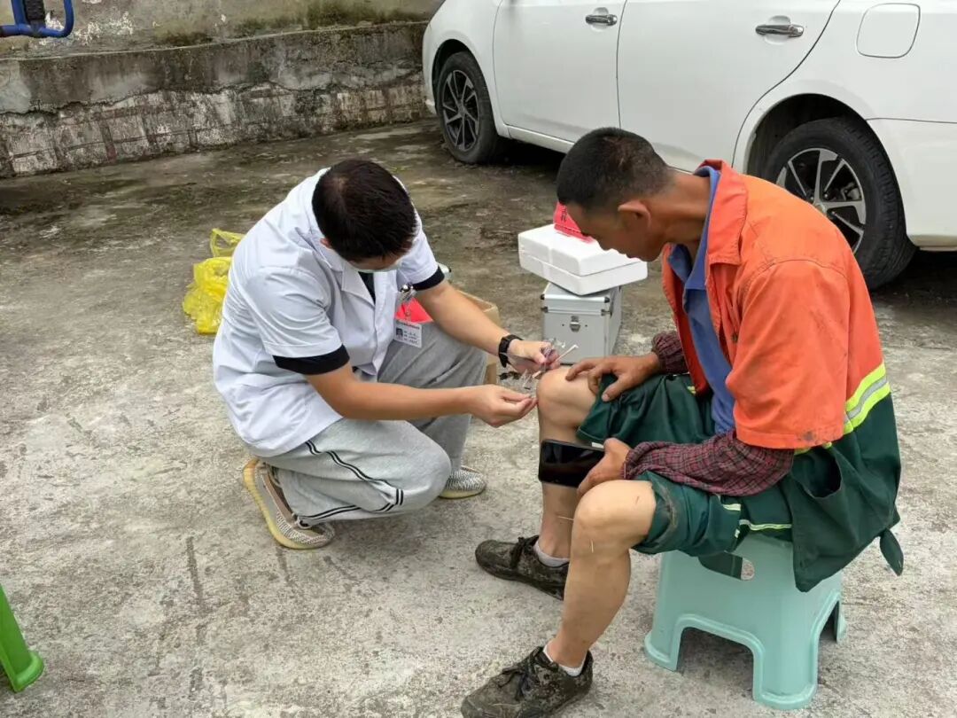 银针轻捻、酸痛渐消,艾灸温灼、经络通畅……诊疗台前医疗队的中医师们利用娴熟的中医治疗手法,针对村民们常见的腰腿劳损、关节疼痛和慢性疲劳,精准施治。一位因长期劳作导致腿脚疼痛的村民,经针灸配合推拿松解后,疼痛明显缓解,脸上露出了轻松的笑容。