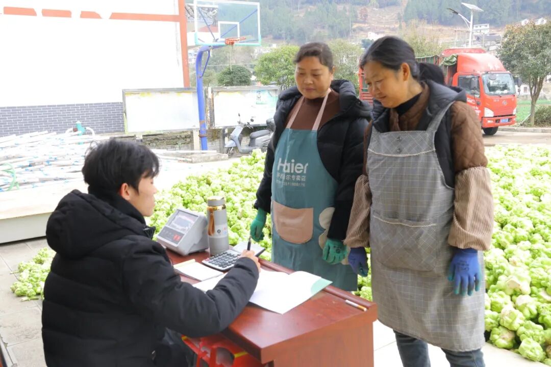 另一边,收购点早已忙碌起来,只见榨菜堆积如山,工作人员有序验质、称重、登记“今年种了7亩榨菜能赚4000多元”村民罗刚拉着自家榨菜来交货。