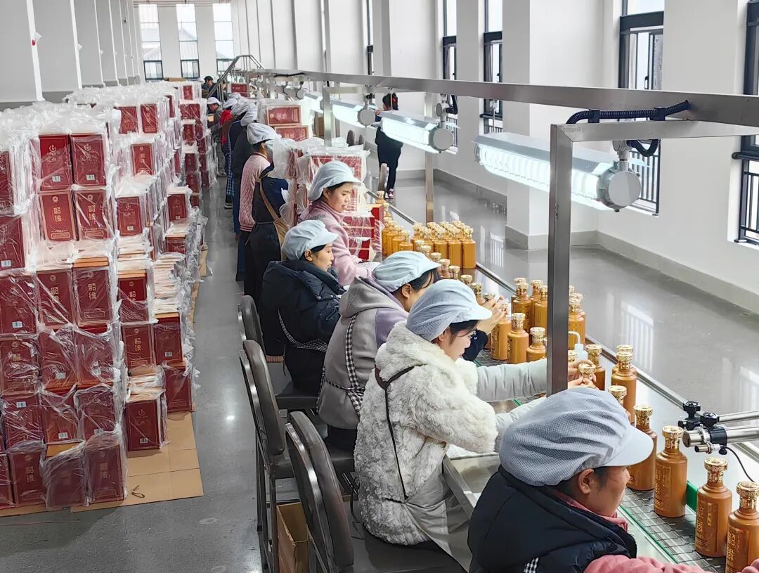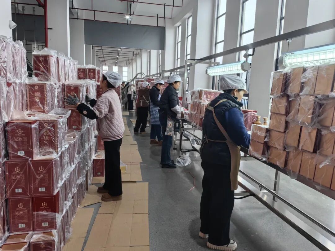 走进君典酒业包装车间,机器轰鸣不息,全自动包装生产线高速运转,洗瓶、灌装、压盖、贴标、装箱……,各工序环环相扣、精准高效。