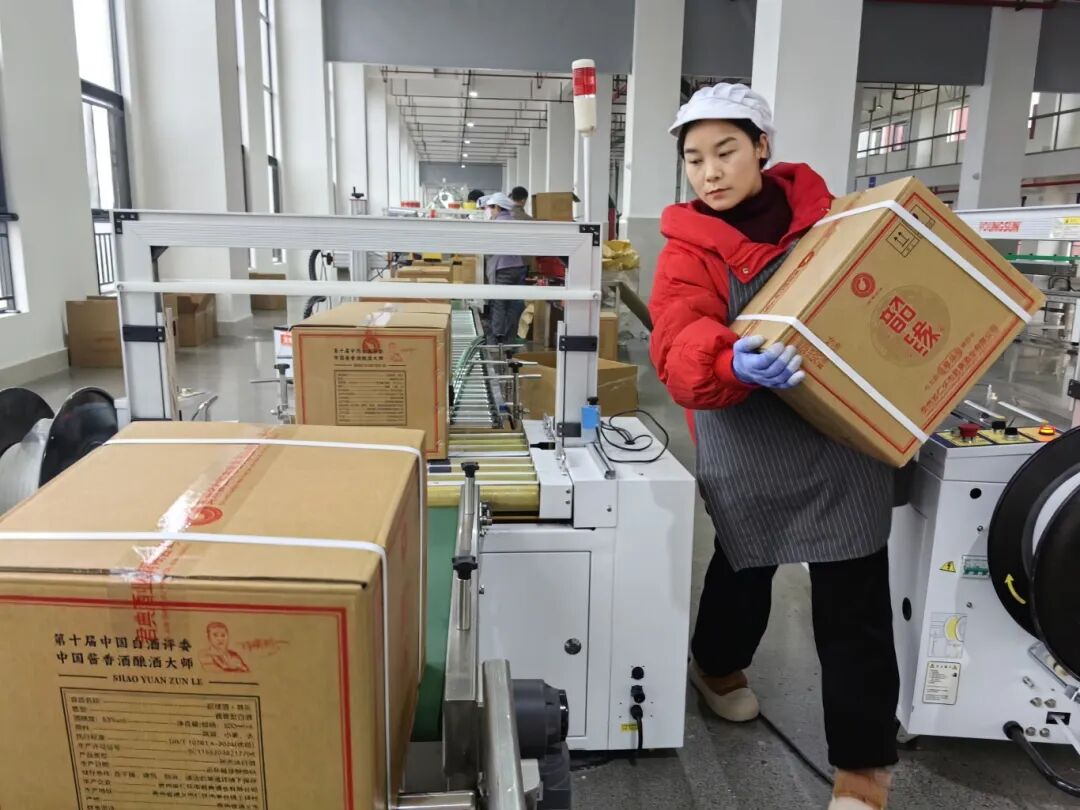 2025年9月,该包装车间正式投用2条全自动包装生产线,日均包装成品酒超2万件,产能稳步提升。