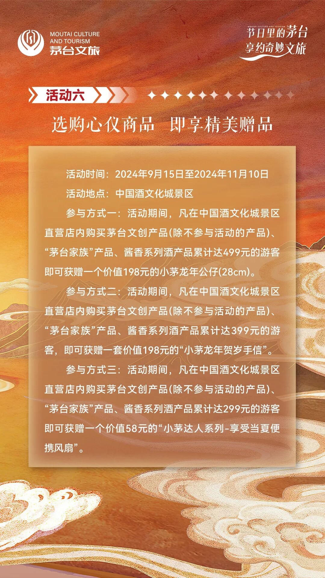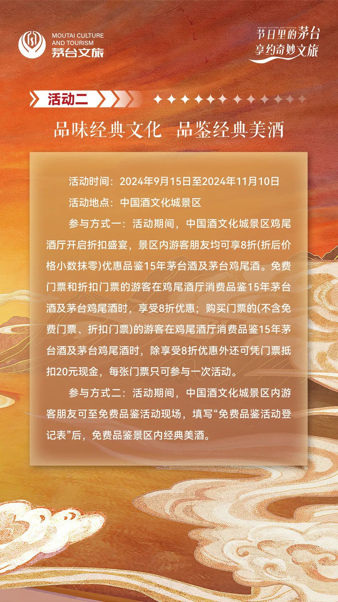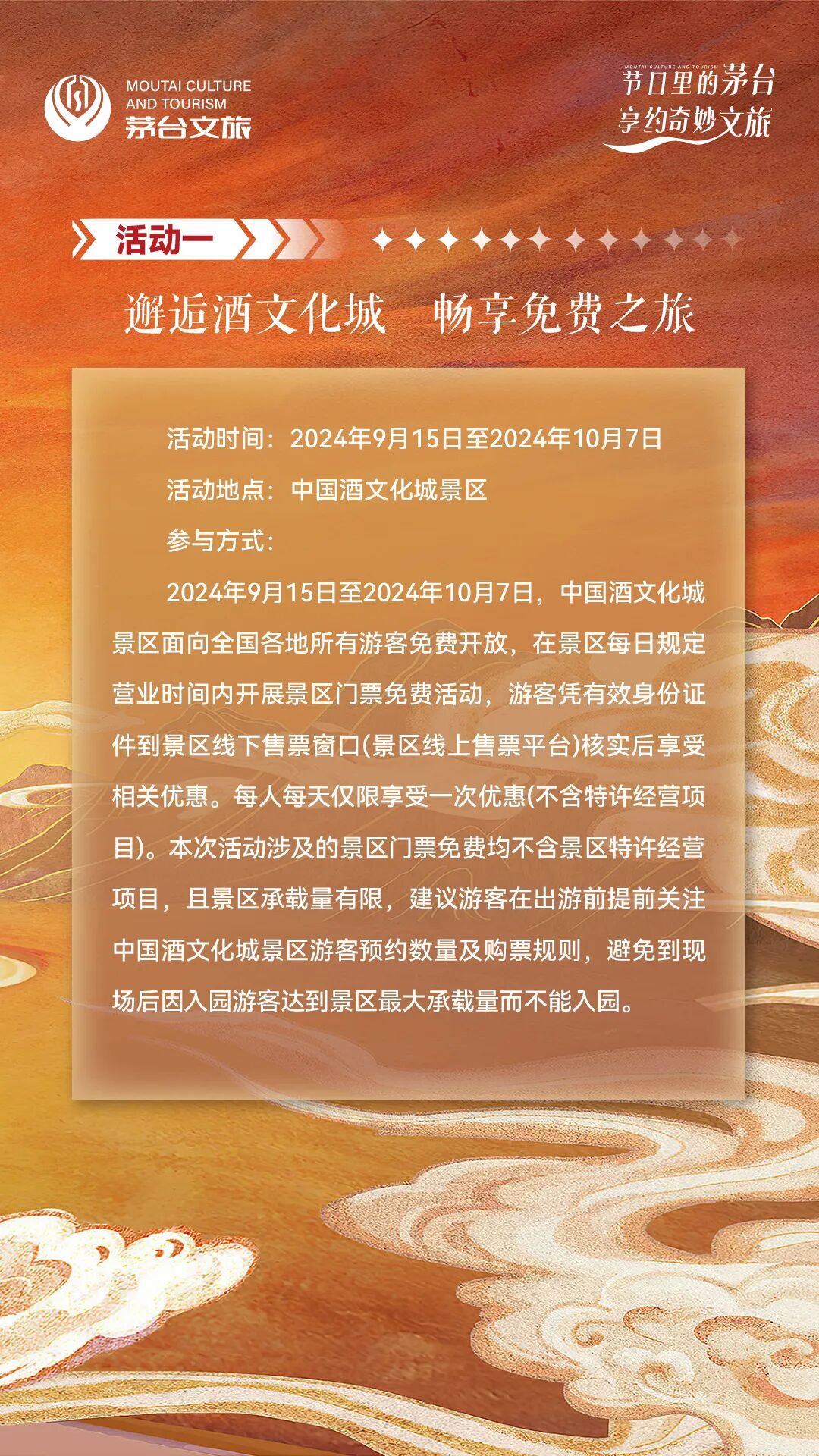 免费开放,活动多多,9月15日至11月10日来茅台镇中国酒文化城“享约”奇妙文旅。